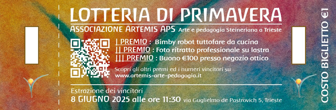 È nata la lotteria Artemis! Un’iniziativa pensata per far conoscere e sostenere le attività pedagogiche, educativo-didattiche, culturali e artistiche della nostra realtà Steiner Waldorf. Una lotteria possibile anche grazie al prezioso contributo di tante realtà locali che hanno scelto di darci il loro supporto con fiducia e generosità.